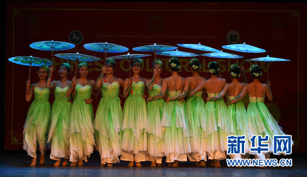 2月9日,在印度首都新德里,2018“歡樂春節(jié)”活動演出現場,中國演員在表演舞蹈。新華網發(fā)(張迺杰攝)