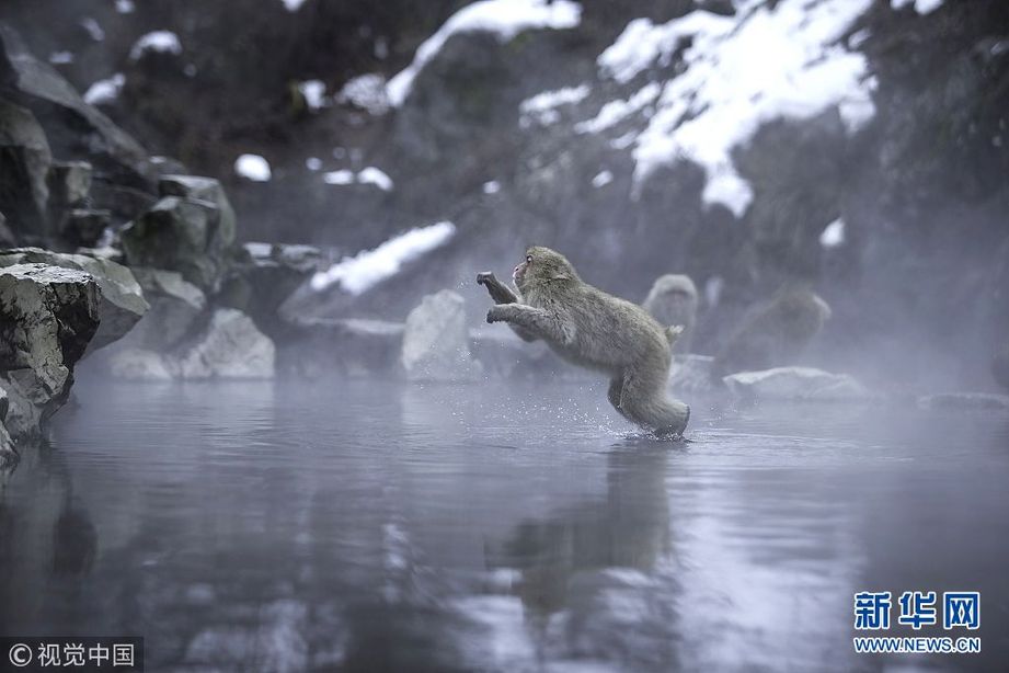 2018年2月18日訊(具體拍攝時(shí)間不詳),日本長(zhǎng)野縣地獄谷,活潑的猴子在溫泉中跳進(jìn)跳出,嬉戲休息。地獄谷野猿公苑地處長(zhǎng)野縣的志賀高原,由于這里的噴泉不斷地從地殼里噴射出蒸汽,故被稱(chēng)為“地獄谷”。冬季,這里最低氣溫低于零下10℃,屬于極寒地帶。(圖片來(lái)源:視覺(jué)中國(guó))