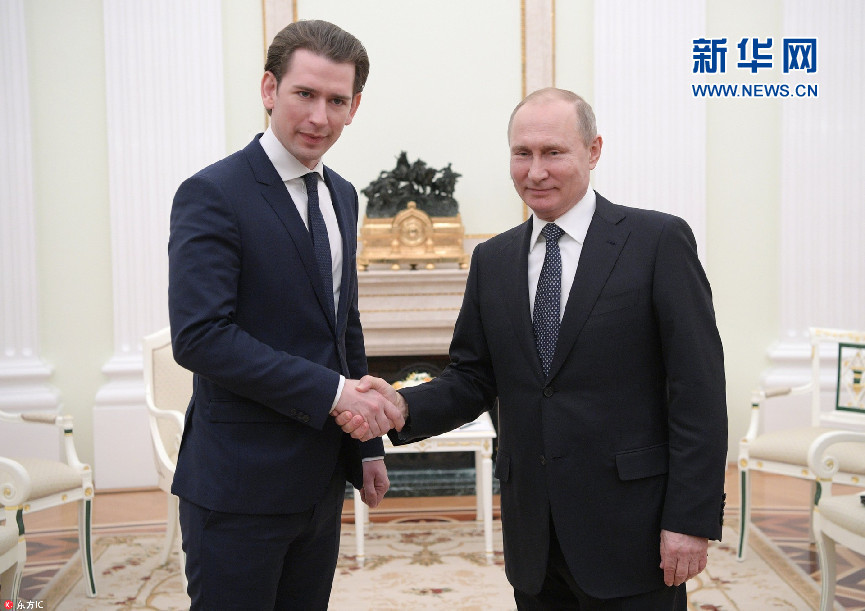 當(dāng)?shù)貢r間2月28日,俄羅斯莫斯科,奧地利總理庫爾茨訪問俄羅斯,與俄總統(tǒng)普京在克里姆林宮舉行會晤。(圖片來源:東方IC)