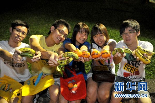 元宵之夜,華裔單身男女紛紛走出家門,涌向公園的河邊或湖邊,男的拋香蕉,女的拋柑橘,還在水果上寫上聯(lián)絡(luò)號碼,以期覓得一段好姻緣。