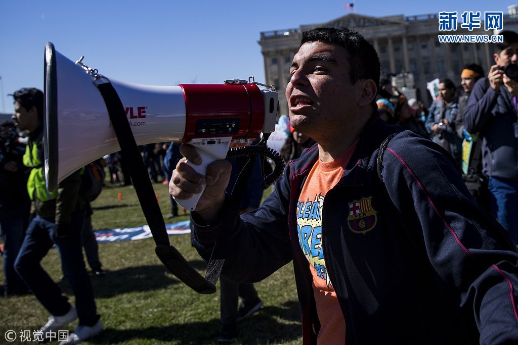當?shù)貢r間2018年3月5日,美國華盛頓,移民活動家在國會山舉行集會,抗議特朗普終結“夢想法案”計劃。(圖片來源:視覺中國)