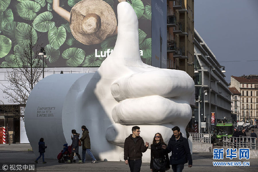 畫風(fēng)清奇!意大利米蘭地標建筑旁現(xiàn)“點贊”大拇指