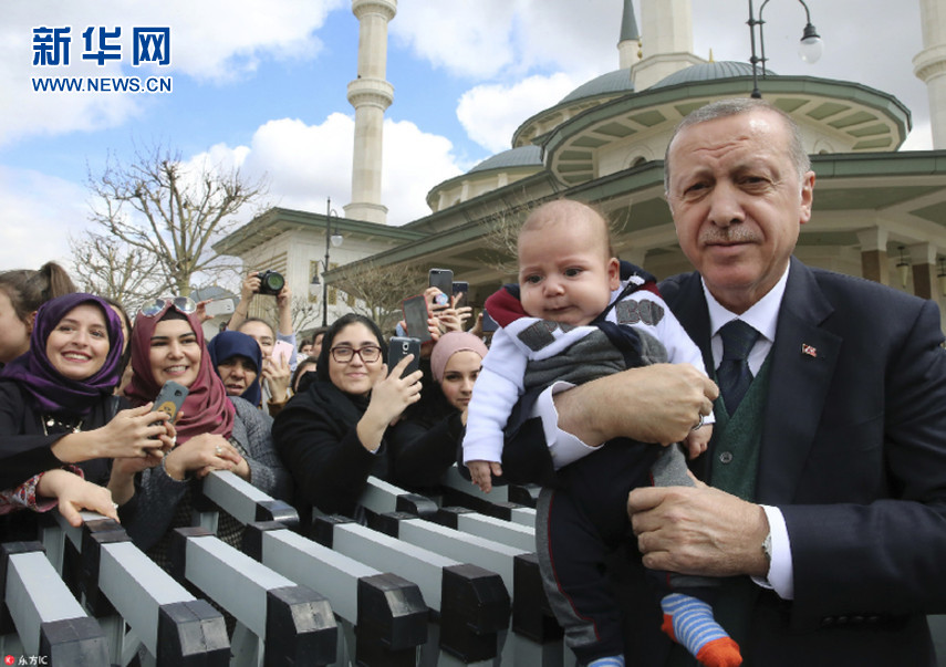 土總統(tǒng)埃爾多安會(huì)見支持者 抱小萌娃與民眾打招呼