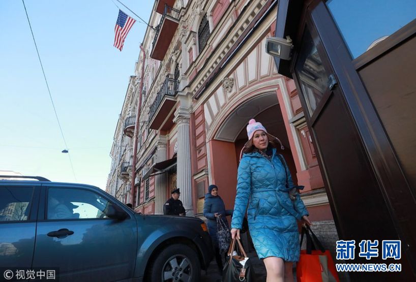 當(dāng)?shù)貢r(shí)間3月30日,俄羅斯圣彼得堡,美國總領(lǐng)事館。俄羅斯外交部長拉夫羅夫3月29日發(fā)布消息稱,作為對(duì)“斯克里帕爾事件”的回應(yīng),俄羅斯將驅(qū)逐60名美國外交官,關(guān)閉美國駐圣彼得堡總領(lǐng)事館。(圖片來源:視覺中國)