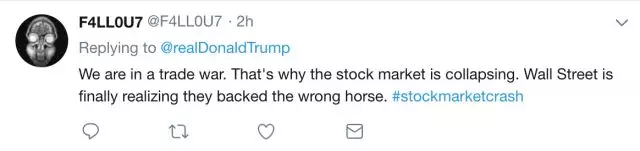 我們就是在打貿(mào)易戰(zhàn),這就是為什么股市在跌,華爾街應(yīng)該終于意識(shí)到他們支持錯(cuò)了人。