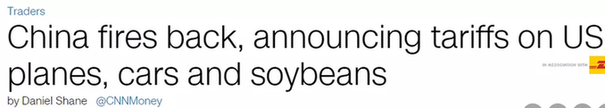 CNN發(fā)表題為《中國(guó)還擊,對(duì)美國(guó)進(jìn)口的飛機(jī)、汽車(chē)和大豆加征關(guān)稅》的文章。