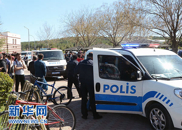 4月5日,在土耳其埃斯基謝希爾,警方到達發(fā)生槍擊案的大學校園。新華社發(fā)