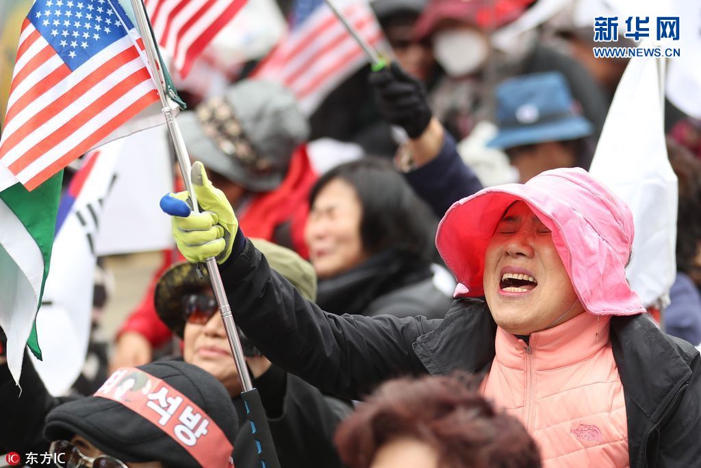 4月6日,韓國首爾,在首爾中央地方法院前,舉行集會的韓國前總統(tǒng)樸槿惠的支持者得知樸槿惠一審獲刑24年傷心落淚。據(jù)報(bào)道,首爾中央地方法院對韓國前總統(tǒng)樸槿惠作出一審宣判,判處其有期徒刑24年,罰款180億韓元(約合人民幣1.06億元)。(圖片來源:東方IC)