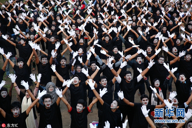 當(dāng)?shù)貢r(shí)間2018年4月8日,孟加拉國(guó)達(dá)卡,2018年國(guó)際啞劇節(jié)在達(dá)卡開幕,超過254名啞劇演員齊聚達(dá)卡大學(xué)參加表演,成為全世界啞劇演員最多的表演節(jié)目,破吉尼斯世界紀(jì)錄。(圖片來(lái)源:東方IC)