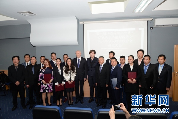 4月11日,首批通過(guò)克羅地亞導(dǎo)游職業(yè)資格考試的中國(guó)導(dǎo)游與歐洲地區(qū)華人旅游業(yè)者代表在薩格勒布合影。新華社記者高磊 攝?