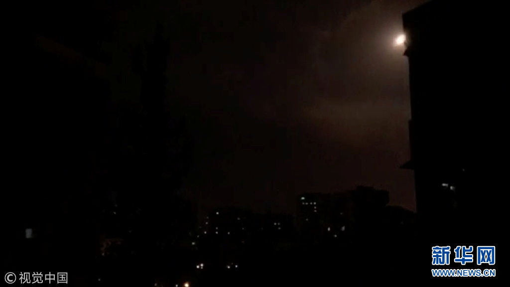4月14日,敘利亞大馬士革,特朗普決定聯(lián)合英國(guó)和法國(guó)對(duì)敘利亞進(jìn)行精確打擊,大馬士革傳出爆炸聲,敘利亞方面進(jìn)行反擊。敘利亞阿拉伯?dāng)⒗麃喭ㄓ嵣?SANA)報(bào)道,敘政府軍在大馬士革以南地區(qū)擊落13枚導(dǎo)彈。敘利亞國(guó)家電視臺(tái)此前稱(chēng)美英法三國(guó)對(duì)敘利亞“發(fā)動(dòng)了侵略”。(圖片來(lái)源:視覺(jué)中國(guó))
