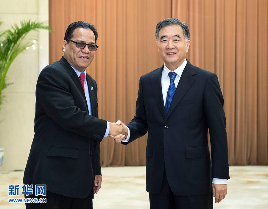 4月24日,全國政協(xié)主席汪洋在北京會見密克羅尼西亞聯(lián)邦國會議長西米納。 新華社記者李濤攝