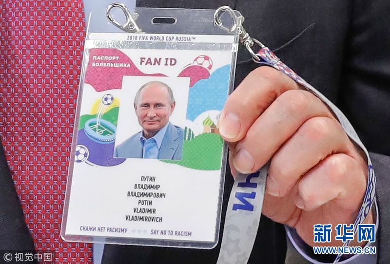 5月3日,俄羅斯索契,俄羅斯總統(tǒng)普京與國(guó)際足聯(lián)主席因凡蒂諾造訪2018年世界杯“球迷身份證”分發(fā)中心,普京獲取印有自己照片的“球迷身份證”。(圖片來源:視覺中國(guó))