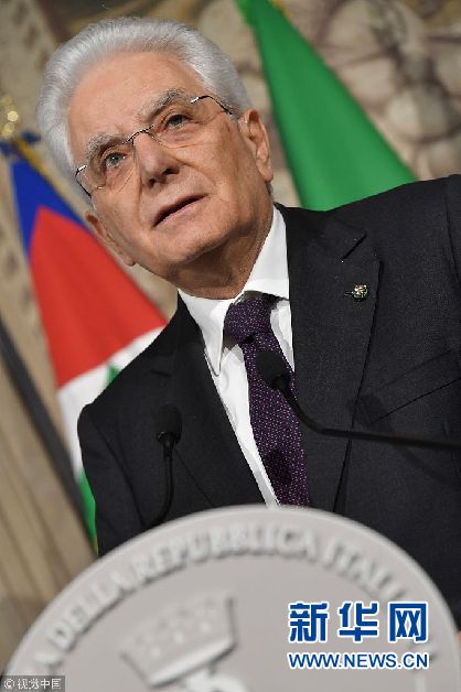 當(dāng)?shù)貢r(shí)間2018年5月7日,意大利羅馬,意大利總統(tǒng)塞爾焦·馬塔雷拉7日召集新一輪組閣談判并出席新聞發(fā)布會(huì)。如果所有組閣努力失敗,馬塔雷拉將授權(quán)組建技術(shù)官僚組成的過(guò)渡政府。(圖片來(lái)源:視覺(jué)中國(guó))