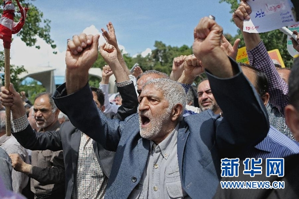 在當(dāng)天的示威活動(dòng)中,伊朗民眾手持“維護(hù)伊核協(xié)議、維護(hù)地區(qū)和平”和“伊朗不懼外來威脅”等標(biāo)語并高呼口號。