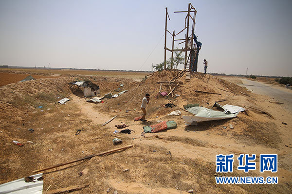 5月27日,在加沙地帶拉法地區(qū),巴勒斯坦人查看遭到以軍炮擊的軍事哨所。新華社發(fā)(哈立德·奧馬爾 攝)