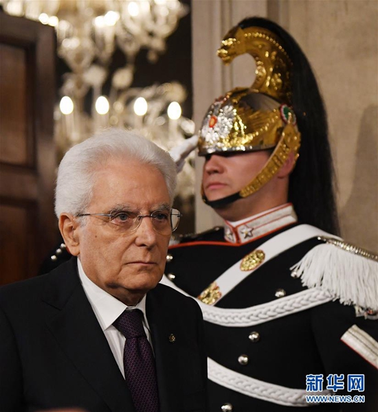 5月27日,在意大利首都羅馬,意總統(tǒng)馬塔雷拉出席新聞發(fā)布會(huì)。據(jù)當(dāng)?shù)孛襟w報(bào)道,意大利新任總理孔特27日晚間與總統(tǒng)馬塔雷拉會(huì)面并提交擬定的內(nèi)閣成員名單時(shí),馬塔雷拉否決了由意大利聯(lián)盟黨和五星運(yùn)動(dòng)力推的持疑歐立場(chǎng)的經(jīng)濟(jì)學(xué)家保羅·薩沃納出任財(cái)政部長(zhǎng)??滋叵蚩偨y(tǒng)提出放棄組閣任務(wù)請(qǐng)求,請(qǐng)求得到總統(tǒng)確認(rèn)。新華社發(fā)(阿爾貝托·林格里亞攝)