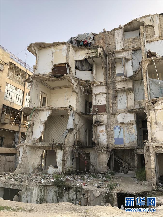 這是5月6日在敘利亞阿勒頗拍攝的阿明娜一家居住的居民樓。新華社發(fā)(胡馬姆·謝赫·阿里 攝)