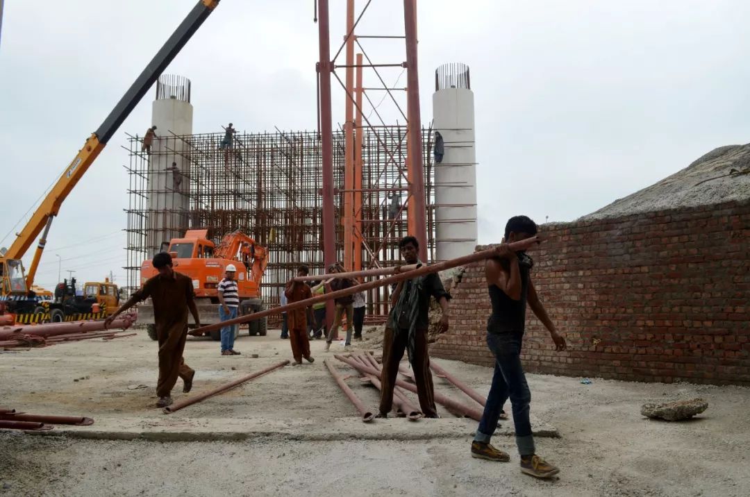 在拉合爾軌道交通橙線項(xiàng)目的建設(shè)工地上
