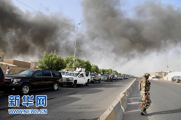 6月10日,在伊拉克首都巴格達,伊拉克安全人員和消防人員在火災(zāi)現(xiàn)場工作。新華社發(fā)(哈利勒·達伍德 攝)