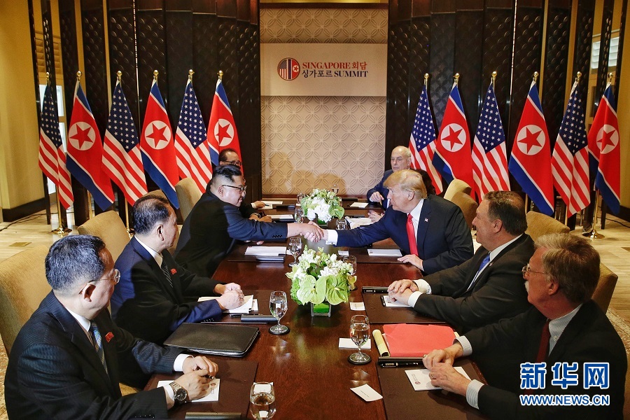 長期敵對的朝美兩國當(dāng)天舉行首次領(lǐng)導(dǎo)人會晤,就朝鮮半島無核化及和平機(jī)制構(gòu)建等事務(wù)展開磋商。