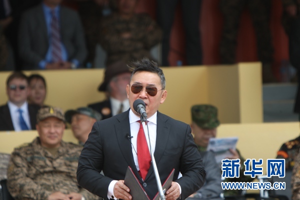 蒙古國總統(tǒng)巴特圖勒嘎檢閱儀仗隊。新華社記者阿斯鋼 攝