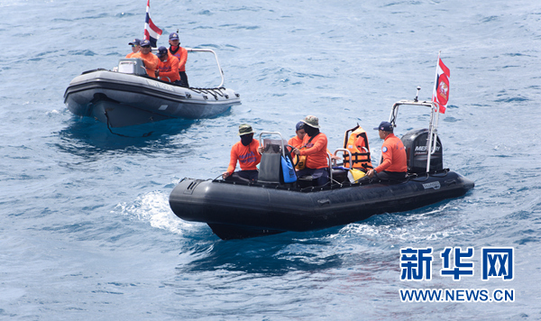 7月8日,在泰國普吉,泰國搜救船只在失事海域搜尋失聯(lián)人員。新華社記者秦晴攝