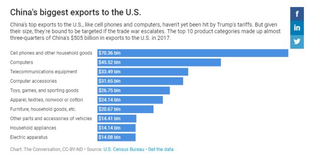 因此,CNBC這篇文章的作者也得出了與“布魯金斯學(xué)會(huì)”一樣的結(jié)論,即特朗普現(xiàn)在對(duì)中國(guó)的打擊只會(huì)傷及自身和盟友。這位作者甚至也列舉了CBS新聞網(wǎng)今天提到的那個(gè)iPhone手機(jī)的例子,并認(rèn)為一旦中美貿(mào)易戰(zhàn)“全面爆發(fā)”,中國(guó)手上可打的“王牌”要比美國(guó)多。