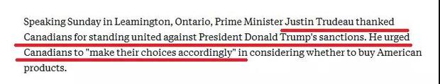第三,大是大非上一定要團結(jié)一致。一說到團結(jié),有的人總會聯(lián)想過于豐富:要么認為這是要老百姓放棄自己的思考,要么認為必須通過極端方式表達自己洶涌的激情——我們印象里一向溫和的加拿大,這次是怎么做的?用美聯(lián)社報道的話:特魯多在利明頓市演講時表示:感謝加拿大民眾團結(jié)一致反對特朗普的制裁,并鼓勵民眾根據(jù)自己的實際情況做出要不要買美國產(chǎn)品的選擇。特魯多為什么這樣說?事實上,自從G7之后特朗普攻擊特魯多“軟弱”“虛偽”以來,推特上“購買加拿大產(chǎn)品”“抵制美國貨”“抵制美國”“擺脫川普”等話題就在不斷升溫,很多加拿大人調(diào)整了消費習(xí)慣,轉(zhuǎn)而購買自己國家的產(chǎn)品。網(wǎng)友們的這些抵制活動,被特魯多稱為是一股“愛國熱情”。