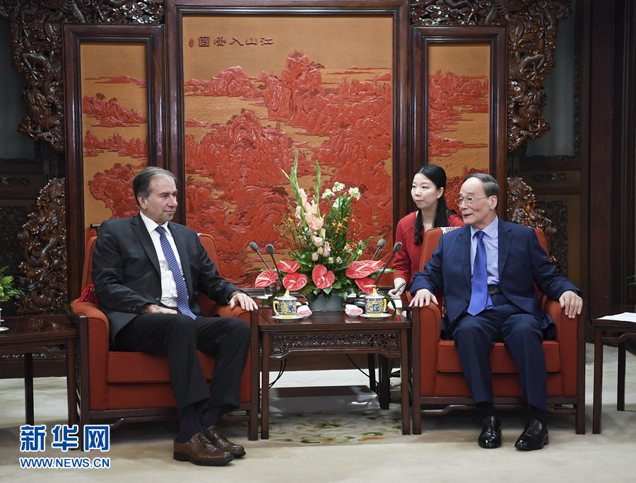 7月16日,國家副主席王岐山在北京中南海會見由黨主席斯齊亞沃尼率領(lǐng)的阿根廷共和國方案黨干部考察團(tuán)。 新華社記者 張領(lǐng) 攝