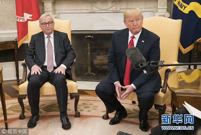 2018年7月25日,美國(guó)華盛頓,美國(guó)總統(tǒng)特朗普與歐盟委員會(huì)主席容克會(huì)面。(圖片來(lái)源:視覺中國(guó))