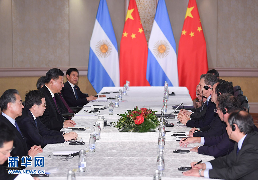 7月26日,國家主席習近平在南非約翰內斯堡會見阿根廷總統(tǒng)馬克里。 新華社記者 燕雁 攝