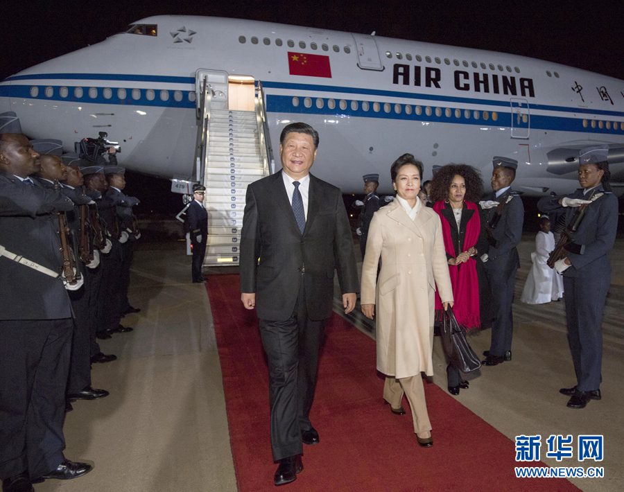 7月23日,國(guó)家主席習(xí)近平抵達(dá)比勒陀利亞,開始對(duì)南非共和國(guó)進(jìn)行國(guó)事訪問。習(xí)近平和夫人彭麗媛在機(jī)場(chǎng)受到南非外長(zhǎng)西蘇魯?shù)日呒?jí)官員熱情迎接。新華社記者李學(xué)仁攝