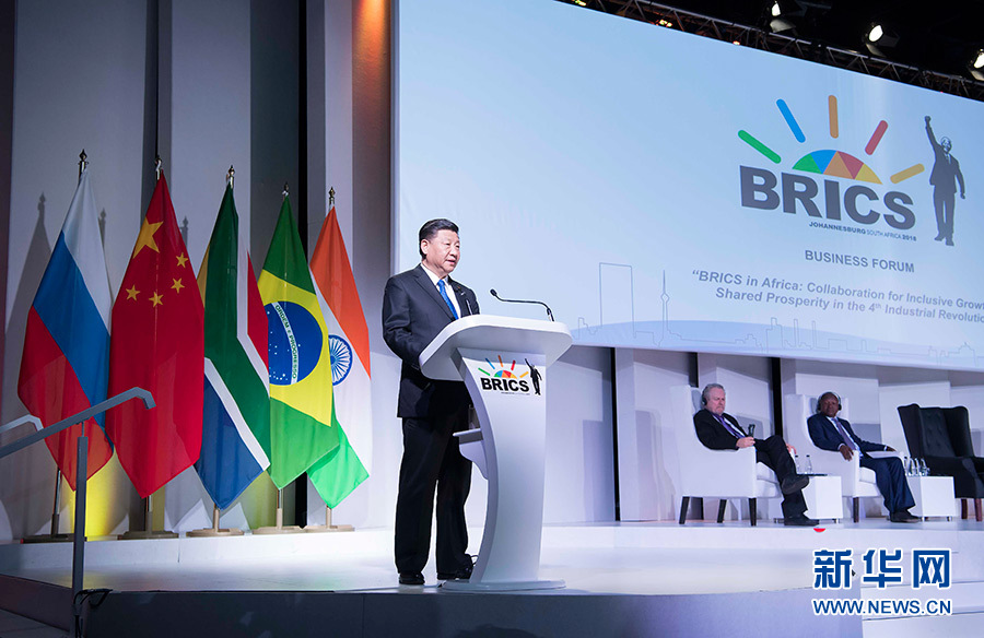 7月25日,國(guó)家主席習(xí)近平應(yīng)邀出席在南非約翰內(nèi)斯堡舉行的金磚國(guó)家工商論壇,并發(fā)表題為《順應(yīng)時(shí)代潮流 實(shí)現(xiàn)共同發(fā)展》的重要講話。新華社記者李濤攝