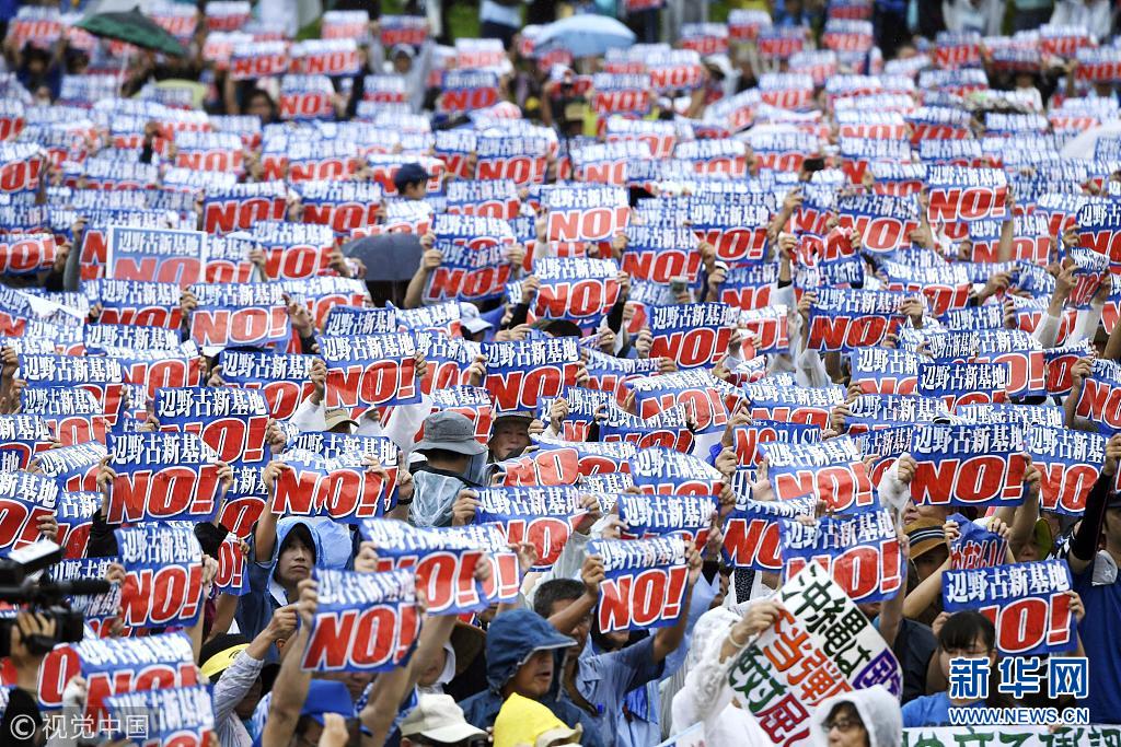 當(dāng)?shù)貢r(shí)間2018年8月11日,日本沖繩縣約7萬民眾8月11日在那霸市舉行大規(guī)模集會(huì),反對駐日美軍將普天間基地遷往名護(hù)市邊野古地區(qū),要求駐日美軍放棄在邊野古地區(qū)新建基地并立即關(guān)閉普天間機(jī)場。當(dāng)天,日本東京都、大阪府、福岡、北海道縣等地民眾也同時(shí)舉行集會(huì)和游行,抗議日本政府推進(jìn)邊野古地區(qū)填海施工。 (圖片來源:視覺中國)