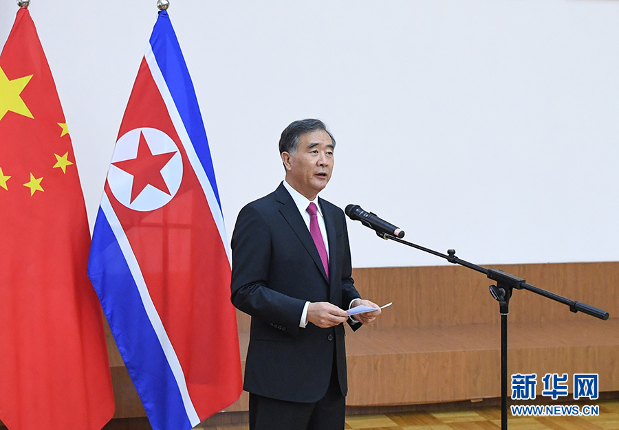9月6日,中共中央政治局常委、全國政協(xié)主席汪洋在北京出席朝鮮駐華使館國慶70周年招待會并致辭。 新華社記者 申宏 攝