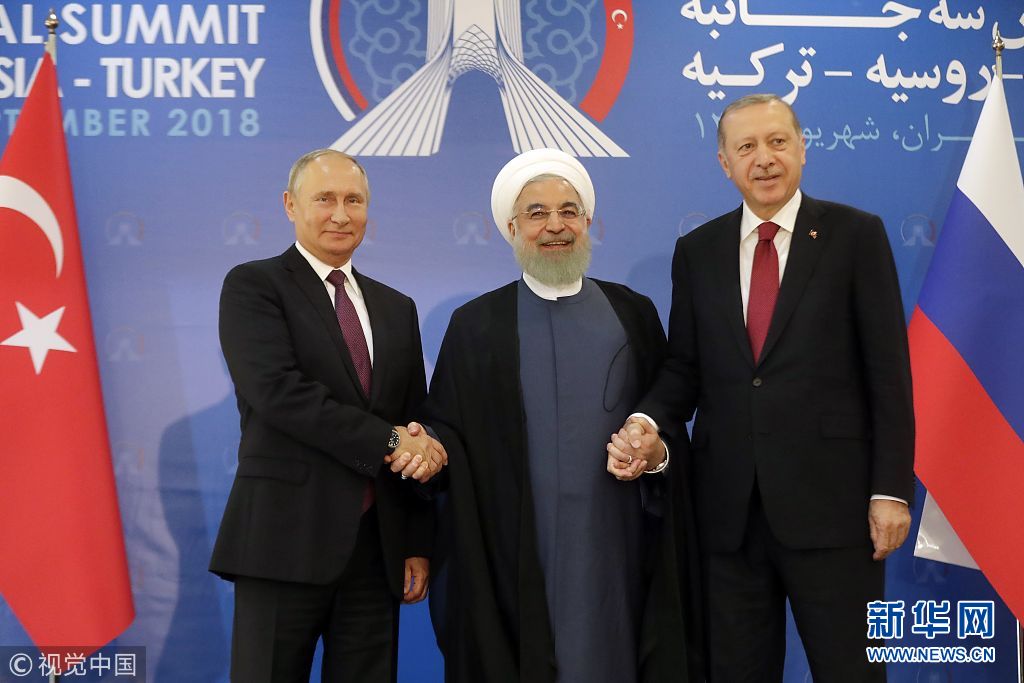 當(dāng)?shù)貢r(shí)間2018年9月7日,伊朗德黑蘭,當(dāng)日,俄羅斯、土耳其和伊朗三國(guó)首腦齊聚伊朗首都德黑蘭舉行峰會(huì),討論敘利亞局勢(shì)。(圖片來(lái)源:視覺(jué)中國(guó))
