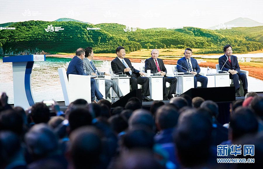 9月12日,第四屆東方經(jīng)濟(jì)論壇全會在符拉迪沃斯托克舉行。中國國家主席習(xí)近平、俄羅斯總統(tǒng)普京、蒙古國總統(tǒng)巴特圖勒嘎、日本首相安倍晉三、韓國總理李洛淵等出席。 新華社記者黃敬文攝