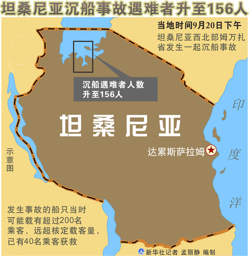 姆萬扎省省長約翰·蒙蓋拉21日說,已有40名乘客獲救。坦桑尼亞總統(tǒng)馬古富力21日宣布,從當(dāng)天起,坦全國為沉船事故遇難者哀悼4天。