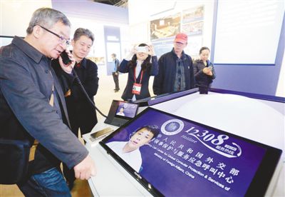2017年10月27日,市民在北京展覽館體驗外交部全球領(lǐng)事保護與服務(wù)應(yīng)急呼叫中心12308熱線。人民視覺