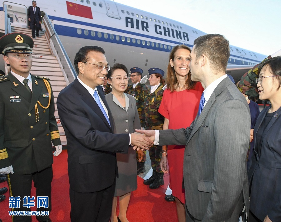 李克強(qiáng)總理夫人程虹,國務(wù)委員兼外交部長王毅,全國政協(xié)副主席、國家發(fā)展和改革委員會主任何立峰等陪同人員同機(jī)抵達(dá)。比利時政府內(nèi)閣成員到機(jī)場迎接。禮兵沿紅地毯列隊(duì),號手吹號致敬。中國駐歐盟使團(tuán)團(tuán)長張明、中國駐比利時大使曹忠明等也到機(jī)場迎接。