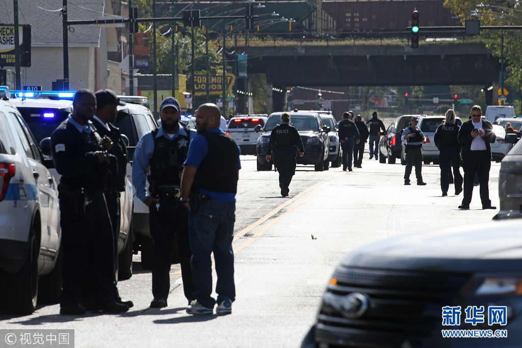 當?shù)貢r間2018年10月22日,美國芝加哥,當?shù)嘏e行一場葬禮后發(fā)生襲擊,共有6人遭到槍擊,目前當?shù)鼐揭言趯υ摪高M行調查。(圖片來源:視覺中國)