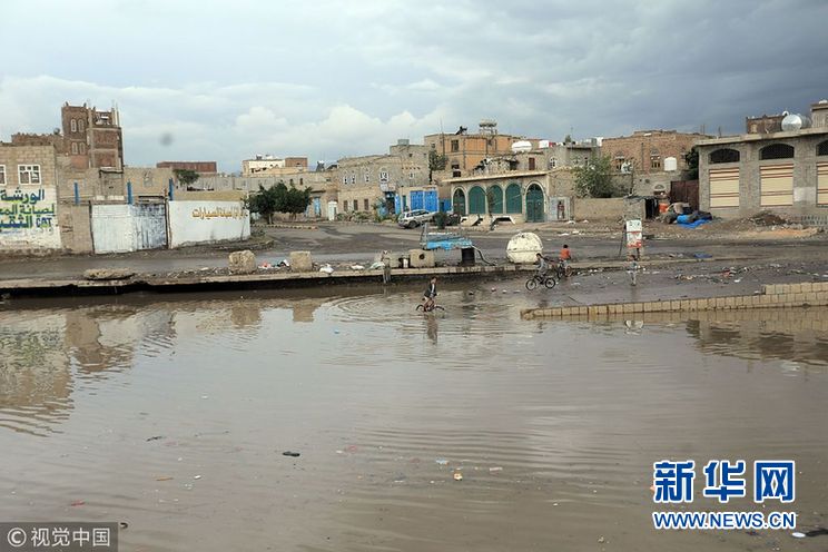 當(dāng)?shù)貢r(shí)間2018年10月23日,也門薩那,連日暴雨導(dǎo)致街道積水嚴(yán)重。(圖片來源:視覺中國(guó))