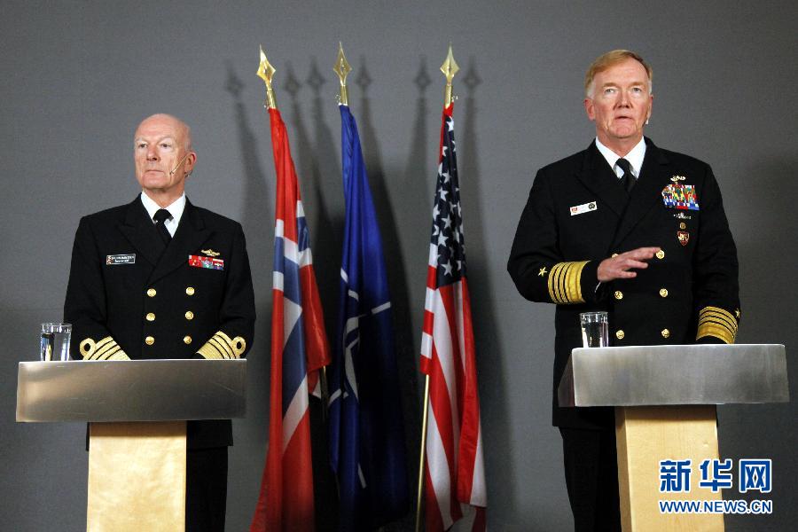 10月25日,在挪威首都奧斯陸,挪威國(guó)防司令、海軍上將哈康·布倫-漢森(左)和美國(guó)海軍上將詹姆斯·福戈介紹軍演情況。 當(dāng)日,北大西洋公約組織(北約)開始在挪威及其周邊地區(qū)舉行為期兩周的“三叉戟接點(diǎn)2018”聯(lián)合軍事演習(xí)。這是北約自冷戰(zhàn)結(jié)束以來(lái)規(guī)模最大的一次聯(lián)合軍演。 新華社記者 梁有昶 攝