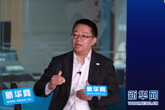 圖為綠地商貿(mào)集團董事長、總經(jīng)理薛迎杰接受新華網(wǎng)獨家專訪。新華網(wǎng)嚴(yán)曉瑜攝
