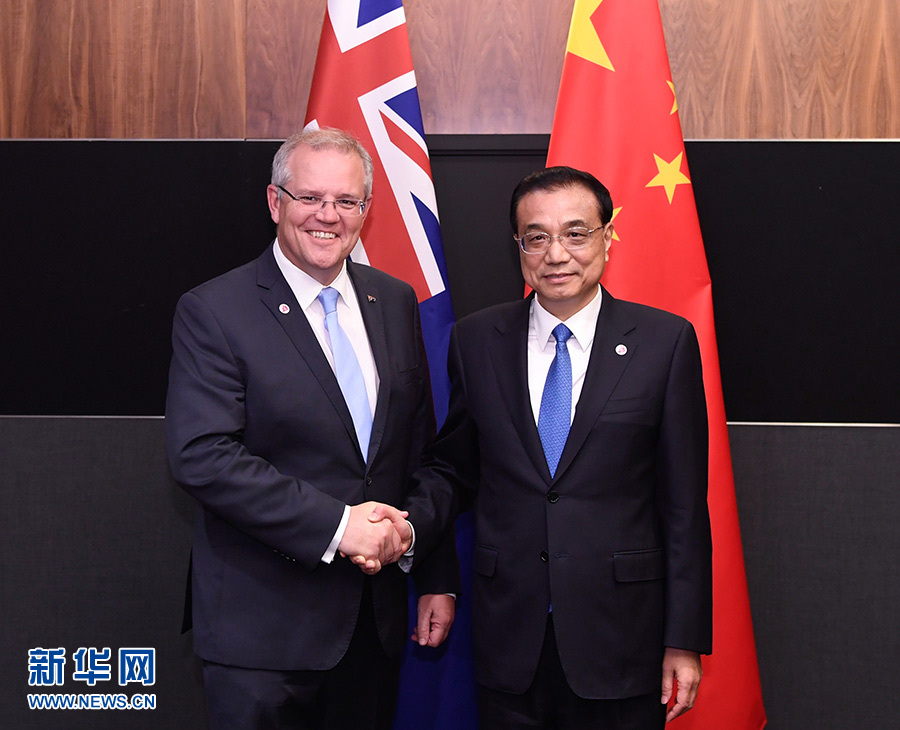新華社新加坡11月14日電(記者劉天 郜婕)當?shù)貢r間11月14日晚,國務院總理李克強在新加坡出席東亞合作領導人系列會議期間,同澳大利亞總理莫里森舉行第六輪中澳總理年度會晤。