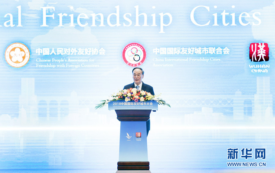 王岐山表示,中國政府支持開展多渠道、多層次的中外民間友好交流。中國的國際友好城市活動(dòng)已開展了45年,城市間合作碩果累累,有力促進(jìn)了中外地方經(jīng)濟(jì)社會(huì)發(fā)展,增進(jìn)了中國人民同世界人民的相互了解和友誼。