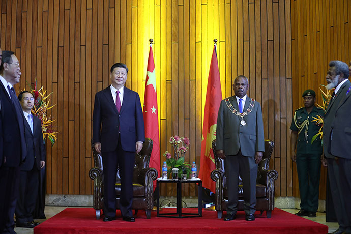 11月16日,國(guó)家主席習(xí)近平在莫爾茲比港會(huì)見(jiàn)巴布亞新幾內(nèi)亞總督達(dá)達(dá)埃。新華社記者 丁林 攝