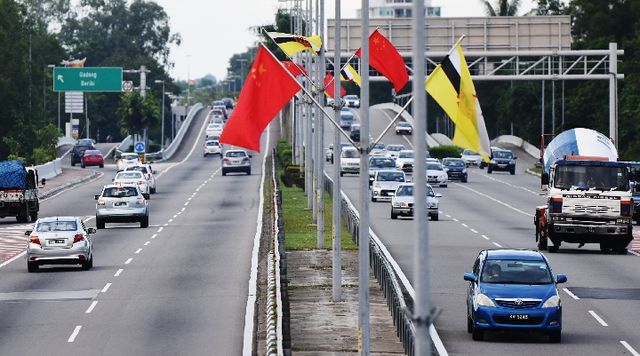 13日,當(dāng)?shù)刈畲笥⑽膱?bào)紙《婆羅洲公報(bào)》在頭版顯著位置刊發(fā)了習(xí)主席即將來(lái)訪的消息。為迎接中國(guó)國(guó)家元首時(shí)隔13年再次到訪,從斯里巴加灣機(jī)場(chǎng)到文萊蘇丹哈桑納爾居住的努洛伊曼王宮的馬路上,早早掛起了鮮艷的五星紅旗。