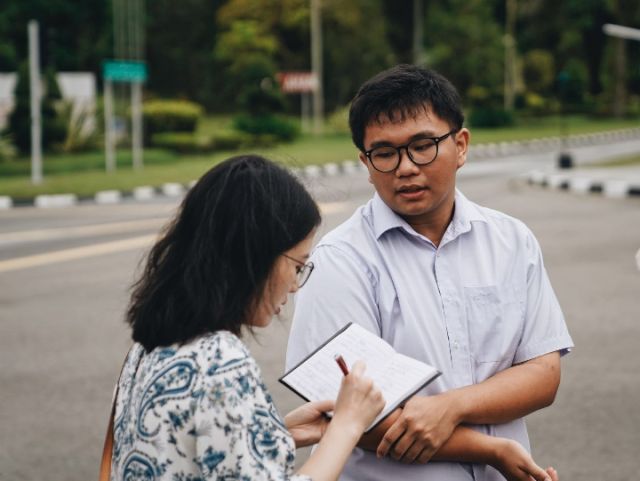 文萊大學(xué)生賴(lài)鏡文在接受記者采訪。新華社記者畢曉洋攝